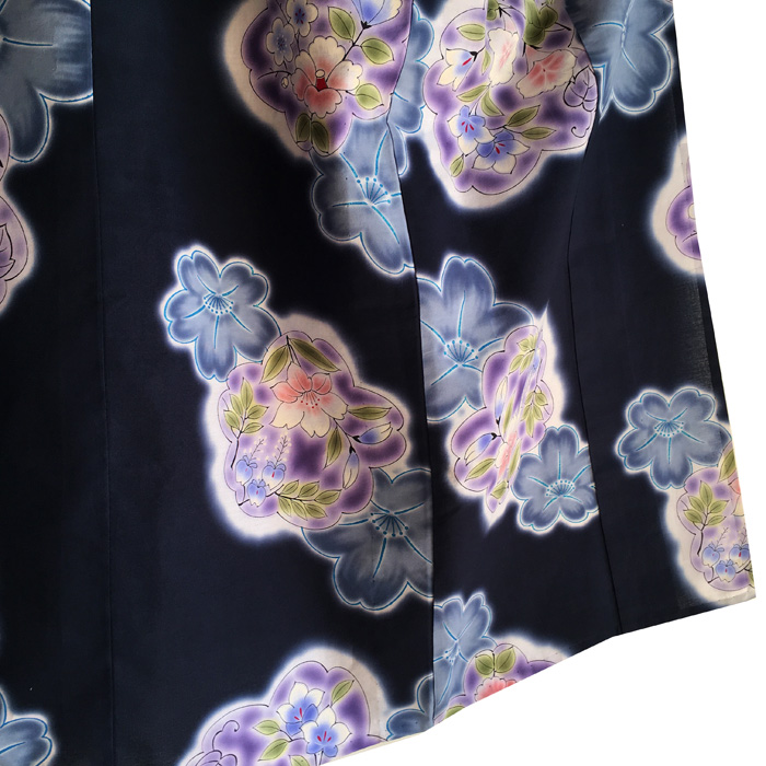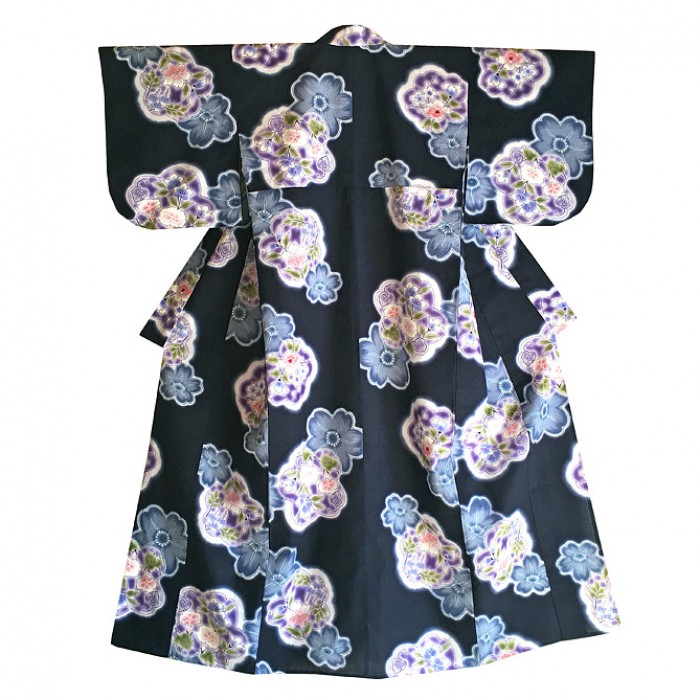 Le kimono est plus ou moins égal à la hauteur de la personne (+ ou - 5 à 10 cm) et le surplus de tissu forme le pli à la taille ohashori.